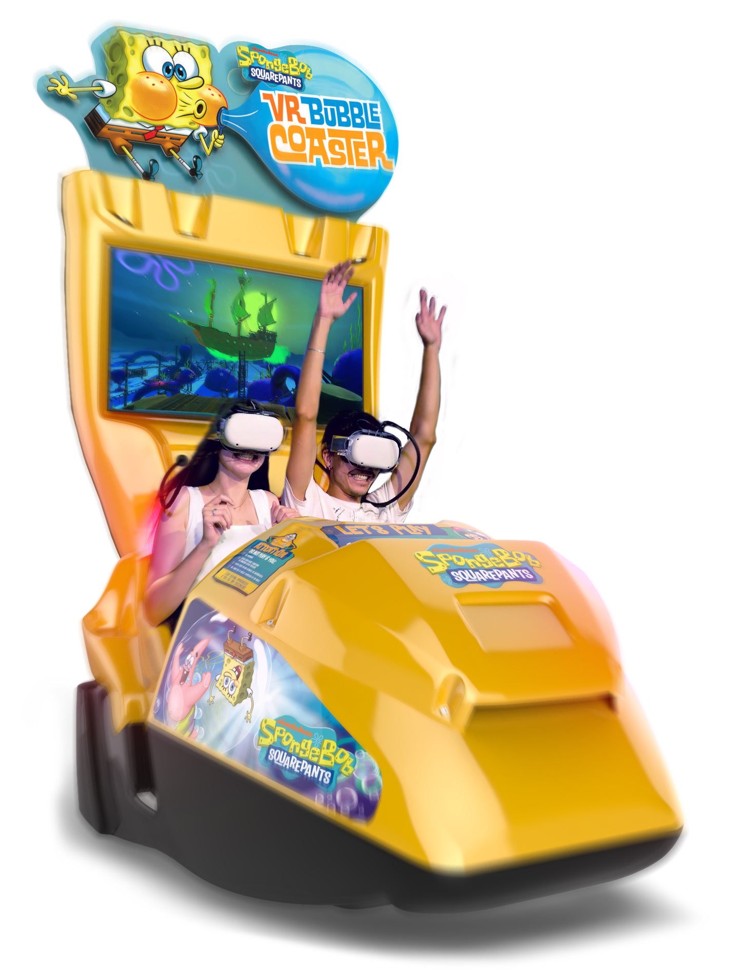 The Ghost Coaster is the first episode expansion for the SpongeBob VR Bubble Coaster, adding a thrilling high-seas adventure with the Flying Dutchman. Featuring glowing nighttime visuals, interactive hand-gesture gameplay, and a haunting soundtrack, this downloadable upgrade keeps your Bubble Coaster fresh and engaging. The VR simulator, manufactured by Rilix, measures 46” W. x 73” D. x 114” H., seats two guests, and ships with three Meta Quest headsets (one is a complimentary spare).