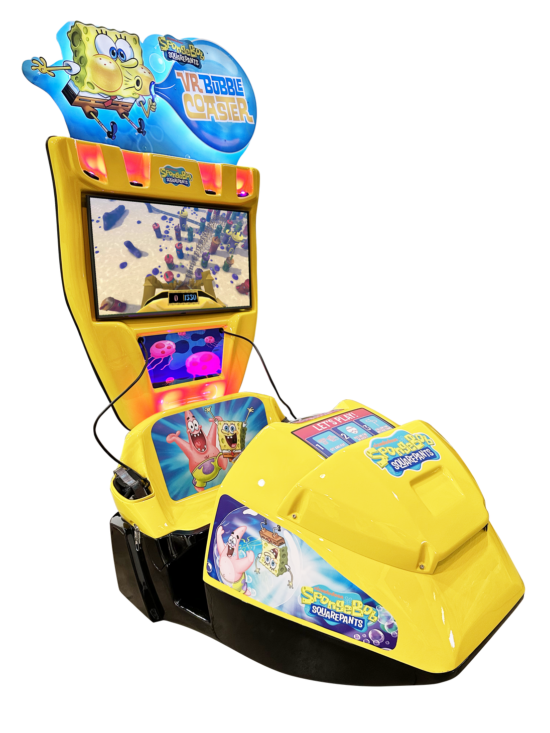 SpongeBob VR Bubble Coaster is a new and exciting unattended VR attraction from Andamiro USA and virtual reality entertainment leader Rilix. The game ships with three scenic rides that immerse guests in a Bikini Bottom adventure like never before.
