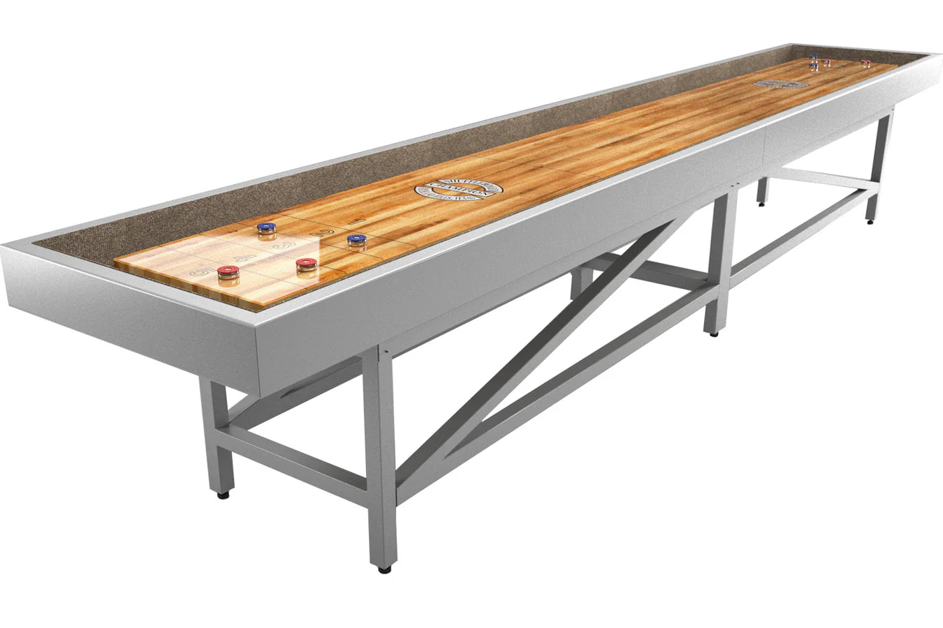 The Outdoor Sheffield with the WeatherWise package enables placement of your Champion Shuffleboard in an open air, non climate-controlled environment. While we still recommend setting your table in a covered area, the WeatherWise package provides security that wind-blown raindrops or snowflakes can be wiped away without causing permanent damage.
