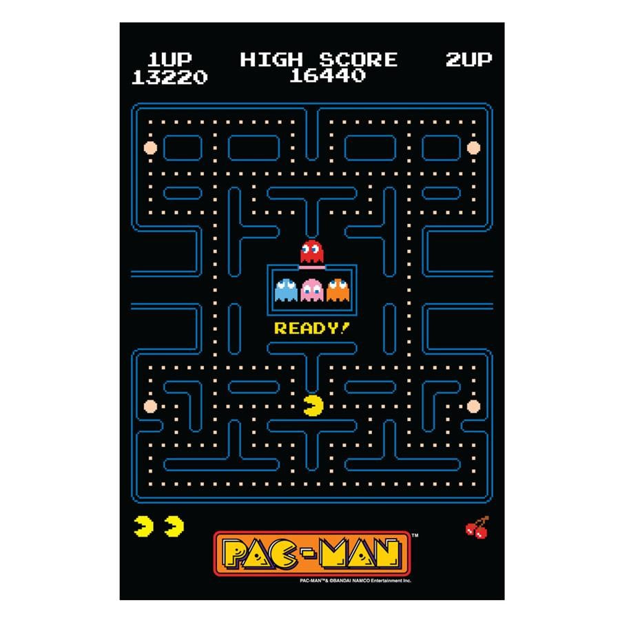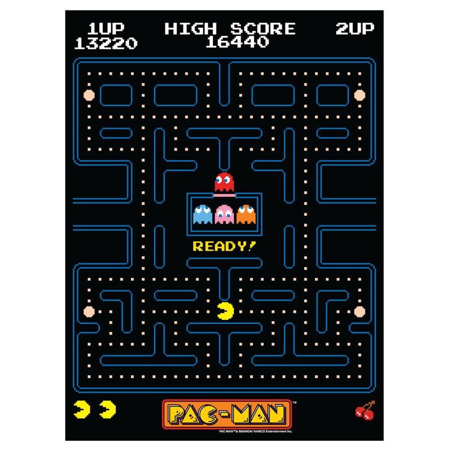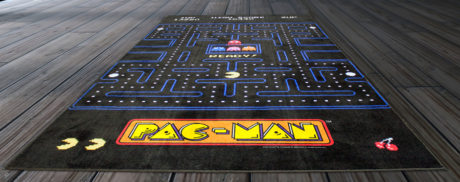 Recapture the fun of your favorite arcade with our Pac-Man Rug. The gang's all here — Pac-Man and the ghosts (Clyde, Blinky, Pinky and Inky). It’s made with a state of the art high definition printing method on a twisted, durable nylon carpet base. The carpet has a soft backing to help with floor protection and anti-static yarn to reduce the build and discharge of static shock. It also features a stain blocking system to protect against spills and soiling. Brighten up your game room, family room or Man Cave with its bright colors and authentic graphics!