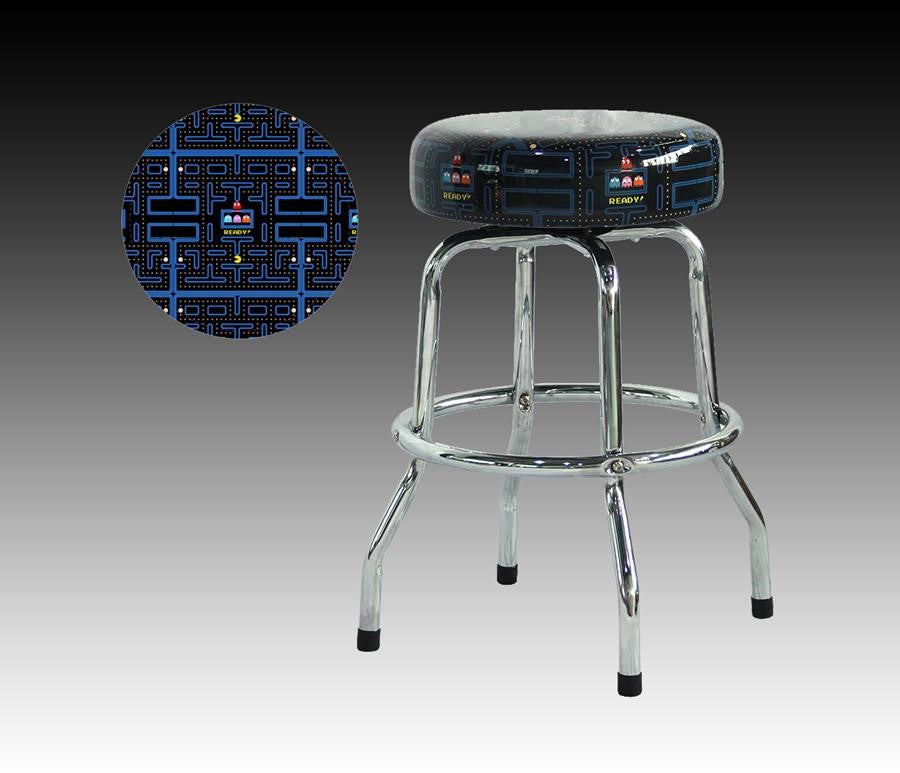 No mancave is complete without a set of PAC-MAN barstools. Featuring durable chrome legs and a unique officially licensed PAC-MAN maze pattern these stools are an attractive addition to any game room. Bar stools come with all the tools and hardware you need to assemble the stool.