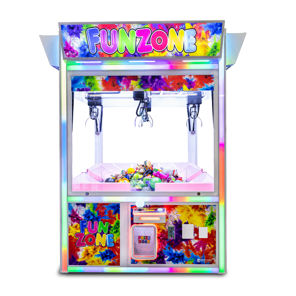 🎈 Family Fun Central – The Fun Zone Family 4P DX with Tub! Gather the whole crew around the Fun Zone Family 4P DX with Tub – Coast to Coast Entertainment's vibrant, 4-player claw machine built for group excitement! Players surround a central rotating tub stocked with plush, toys, and redemption prizes, taking turns (or competing) to snag their favorites. Its magnificently colorful design with bright, festive hues lights up any game room like a party—perfect for families, kids, and friends chasing wins together!
