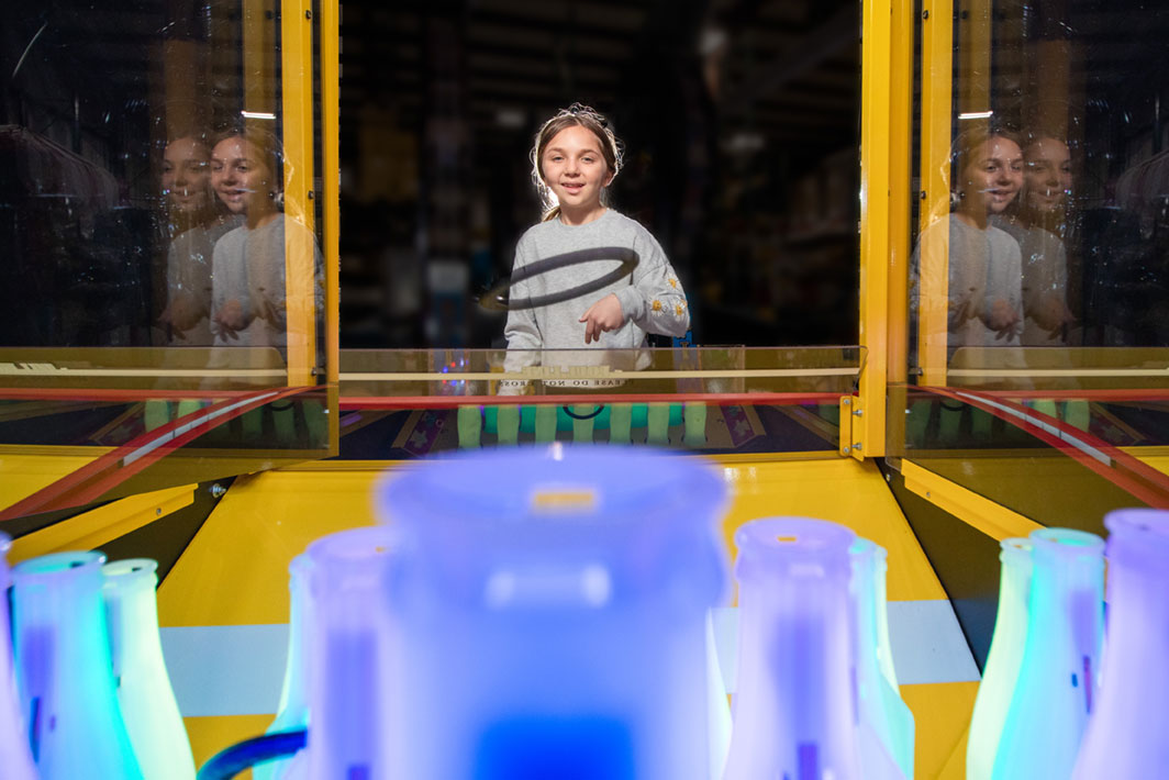 Players are challenged to toss rings around the bottles on the playfield. This classic carnival game we know and love will award you with tickets based on your ring tossing skills.