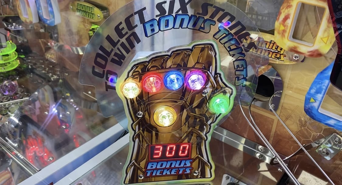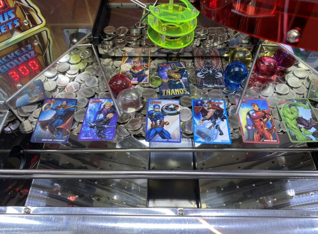 rapid-fire coin pusher inspired by the Infinity Stones storyline in the “Avengers” movies by Marvel Studios.