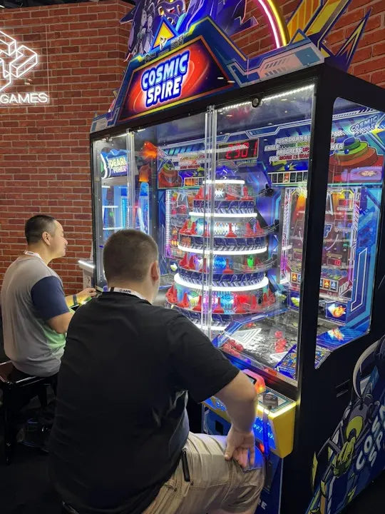 Cosmic Spire is a two-player, alien-themed coin pusher that challenges guests to ascend to new heights! Drop coins down the play-field to win tickets, coins and best of all, to send a Fire Ball into the tower. Hit one of the UP slots to go to the next level. As players ascend, the ticket values do too – all the way to the top reward level for a chance at the Super Bonus tickets!