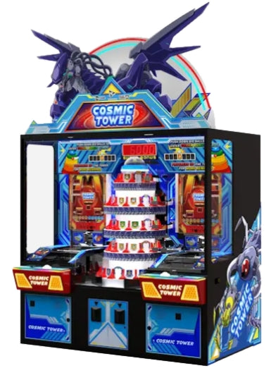 Cosmic Tower is a two-player, alien-themed coin pusher that challenges guests to ascend to new heights! Drop coins down the play-field to win tickets, coins and best of all, to send a Fire Ball into the tower. Hit one of the UP slots to go to the next level. As players ascend, the ticket values do too – all the way to the top reward level for a chance at the Super Bonus tickets!