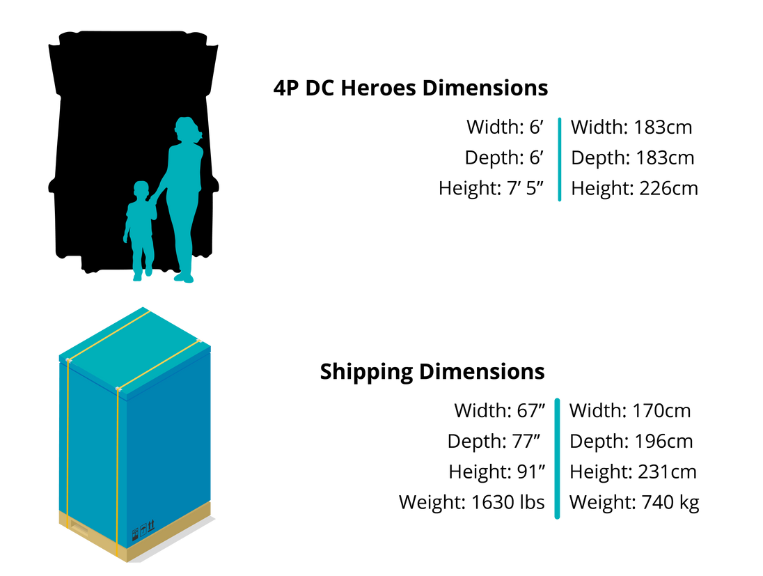 The DC Superheroes game is one of the highest earning arcade games in the market today, and features characters from the world famous DC Comics brand. The cabinet features 4 different sides of colorful DC Comics characters, plus a marquee which is has a unique hero for each of the 4 different sides of this 4 player cabinet.