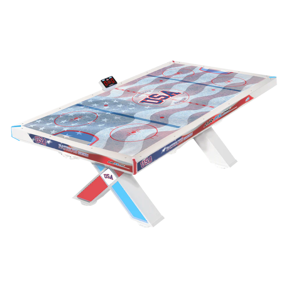 This high “arcade” quality table regulation size table is made of powder coated steel for strength and durability, and features hardwood accents that will make it the envy of your friends. The American-made construction ensures that this table will last for many years of intense air hockey matches.