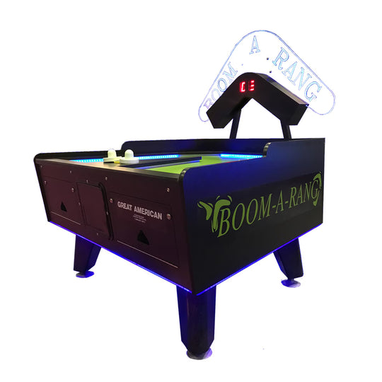 Space-saving air hockey table with side-by-side play configuration and compact 5 square foot footprint. Overview The Great American Boom-A-Rang reimagines air hockey with an innovative side-by-side play design that maximizes revenue potential while minimizing floor space....Sale price From $3,885.00Regular price $4,820.00Sale price From $3,885.00Regular price $4,820.00 -