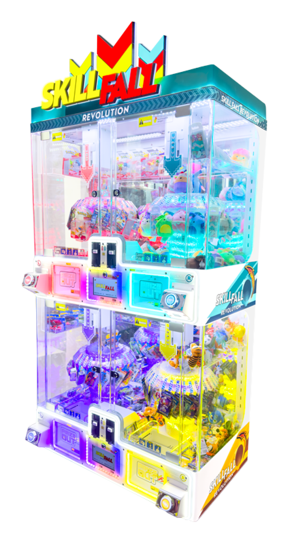 Skill Fall Revolution Mini 4 Player is the latest addition to the globally successful Skill Fall Revolution series. Designed in a sleek, stacked format with four mini play positions, this cabinet maximizes fun and earning potential while maintaining a compact footprint. With four play positions, operators can engage more players at once, making it a perfect fit for arcades, FECs, and bowling centers.