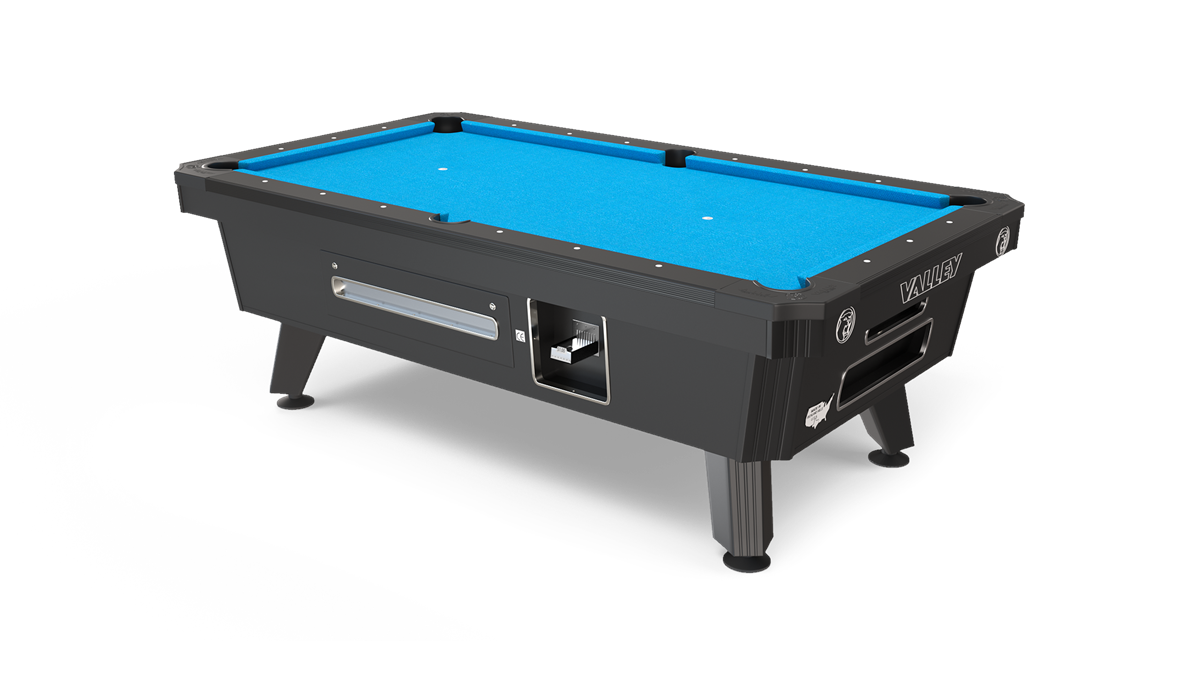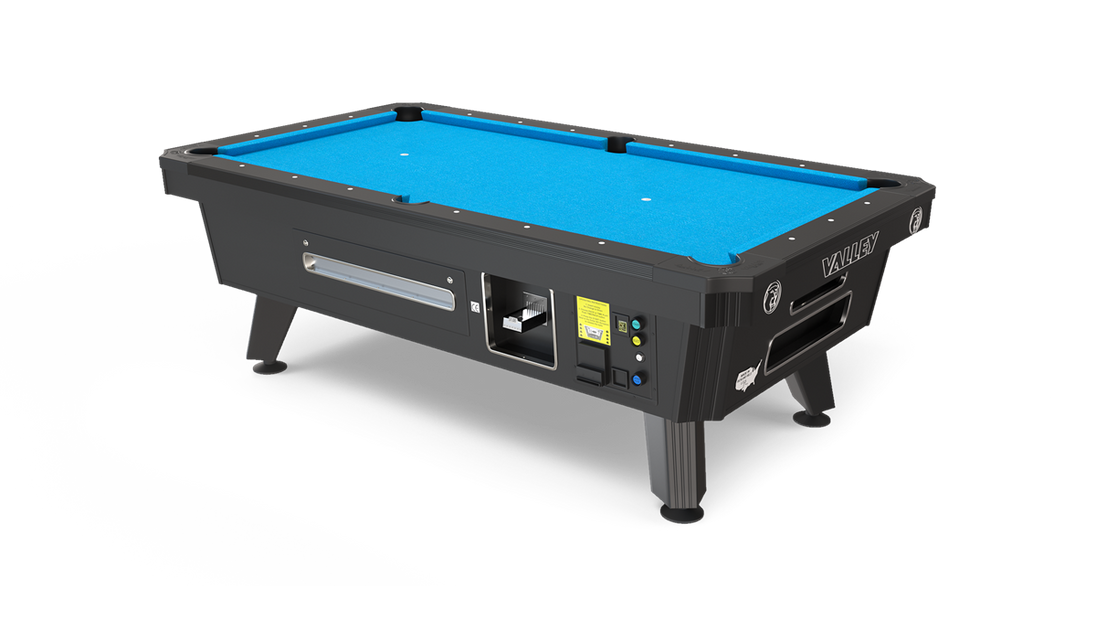 After numerous discussions between our staff, esteemed professional players, league members, and of course operators Valley has perfected the newest table in their lineup – the Pro Cat. Boasting twenty-four reinforced steel slate bolts, 1-piece premium Brazilian slate, and Championship worsted cloth, the Pro Cat is the most sophisticated table created in our nearly eighty-year history.