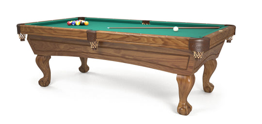 The Norwich Features: Solid wood table with 1″ framed slate Ball and Claw style legs Rail sights: Diamond-shaped white pearlized Pocket options: Shield or Fringe Table sizes: 7′ and 8′ Optional Accessory Drawer on TM...Regular price $5,250.00Regular price $5,250.00 -