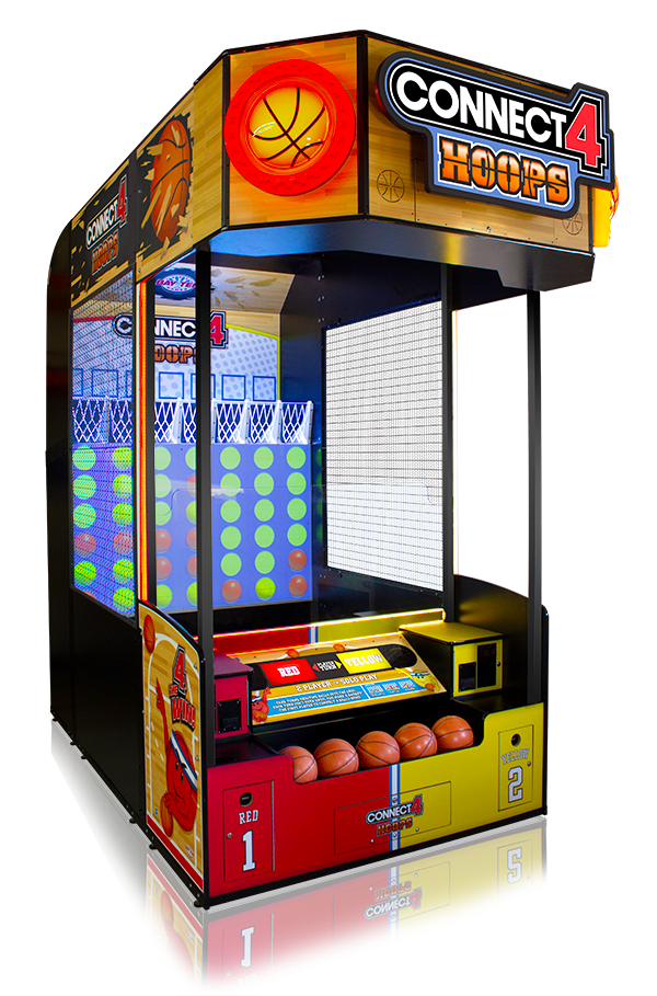 One or two players shoot baskets and watch as their basketballs magically fall into place on the LED-projected grid. The first player to align four balls horizontally, vertically, or diagonally on the augmented reality playfield wins!