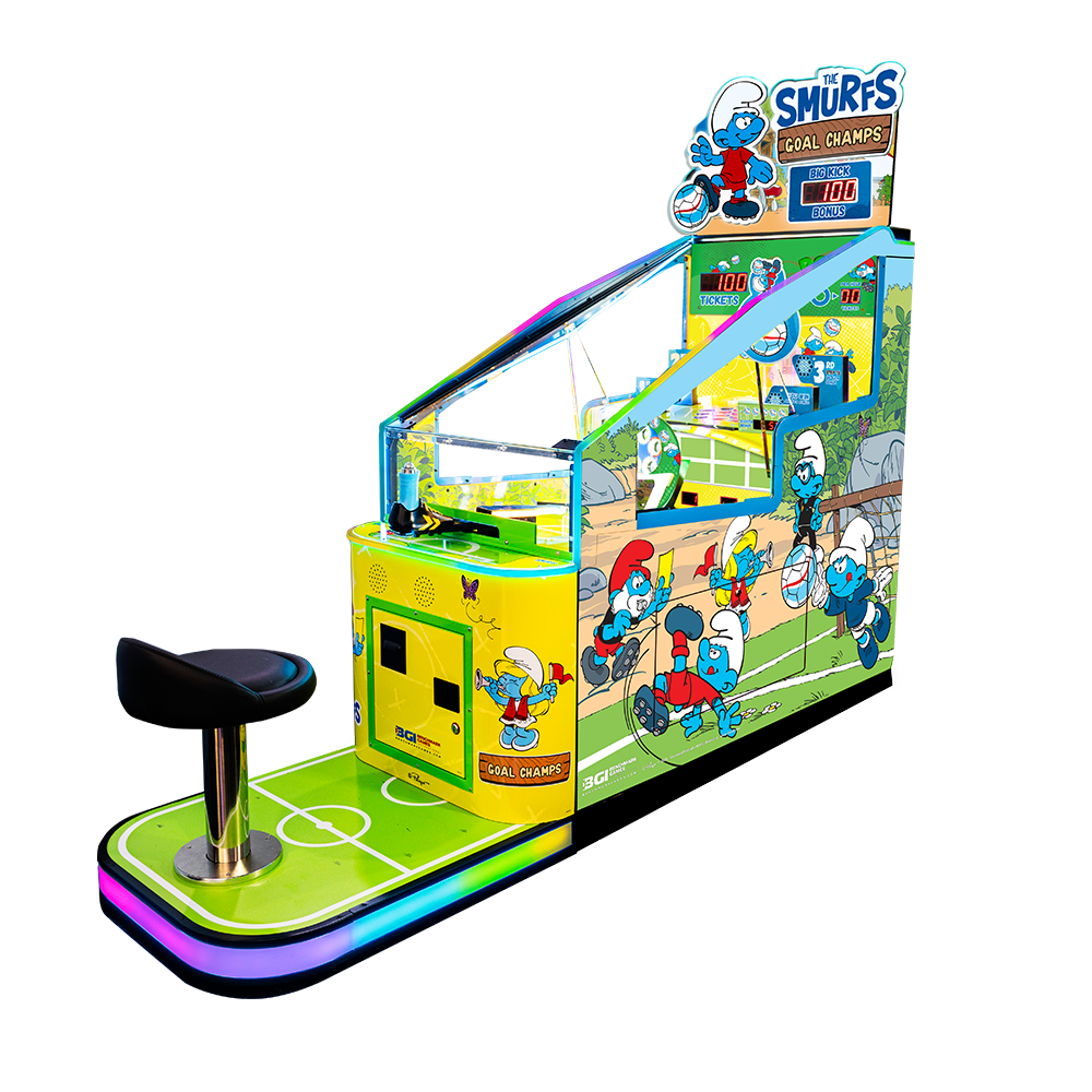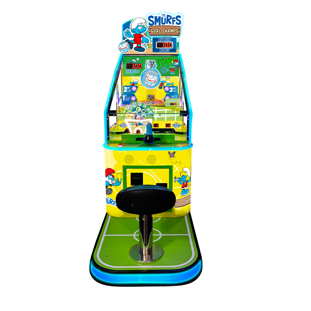 Smurfs Goal Champs Soccer blends beloved pop-culture characters with interactive soccer fun, making it a standout choice for arcades, family entertainment centers, theaters, bowling alleys, and more. The combination of skill play, recognizable branding, and ticket rewards encourages players to come back for more — increasing both playtime and revenue.