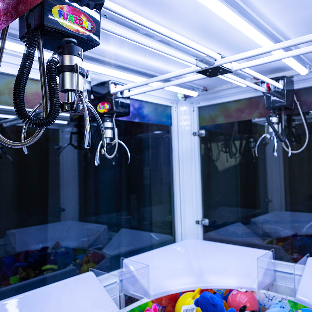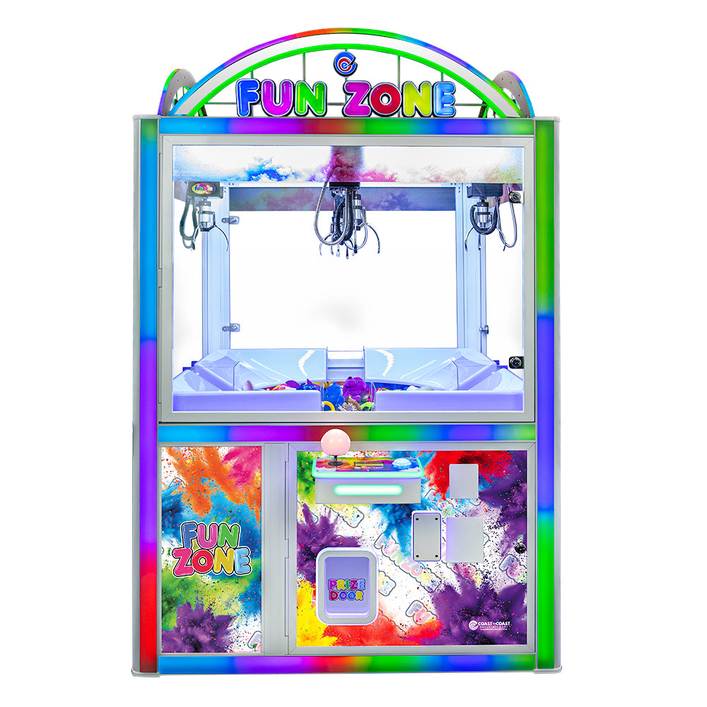 🎉 Compact Family Fun Revolution – Fun Zone Family 4P Mini with Tub! The Fun Zone Family 4P Mini with Tub from Coast to Coast Entertainment is the perfect answer for operators who want the thrill of a 4-player rotating tub crane but don't have room (or ceiling height) for the full-size DX version! This mini powerhouse delivers endless group fun with four player stations surrounding a central rotating prize tub—players time their drops to snag plush, toys, tickets, or redemption prizes from the spinning center.