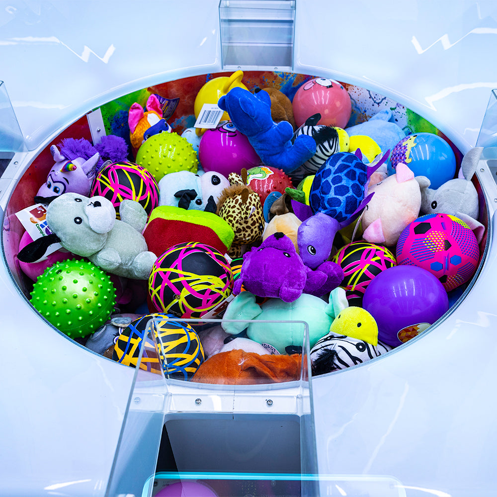 - Rotating Prize Tub — Central spinning area challenges timing and skill for exciting grabs