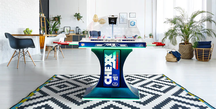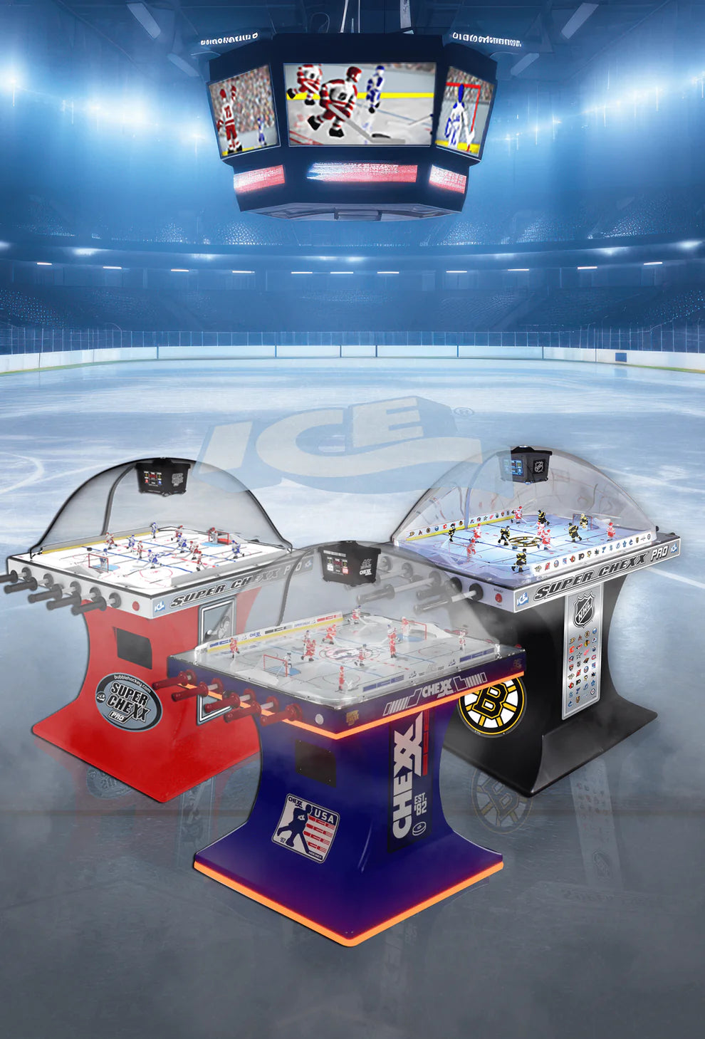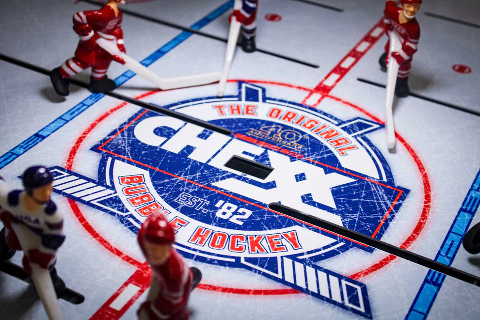The 1980’s was one of the best decades ever! It was a time of great pop culture including some of the best movies, music, TV shows, and toys of all time.The original “Chexx” bubble hockey game was also designed and manufactured in the eighties. It was the first bubble hockey game with its “iconic” design to bring fun and fast-paced excitement to the arcade environment but also to your local bar, restaurant and hockey arena. The game became an instant phenomenon with worldwide sales. Today, the game is embraced by bubble hockey fans everywhere and continues to be the most popular table game in the world.