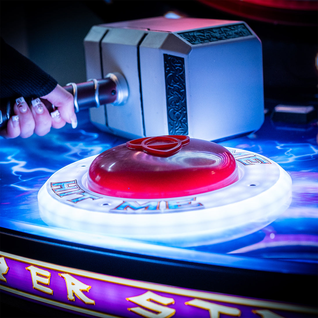 Unleash the power of the gods! In Odin’s Hammer Strike, players grab the mighty hammer and swing with all their strength to send lightning surging up the power meter. The harder and more precise the hit, the higher the score — and the greater the reward! With stunning LED effects, booming thunder sounds, and a competitive leaderboard, this is the ultimate test of strength and skill.