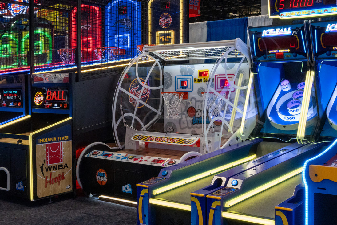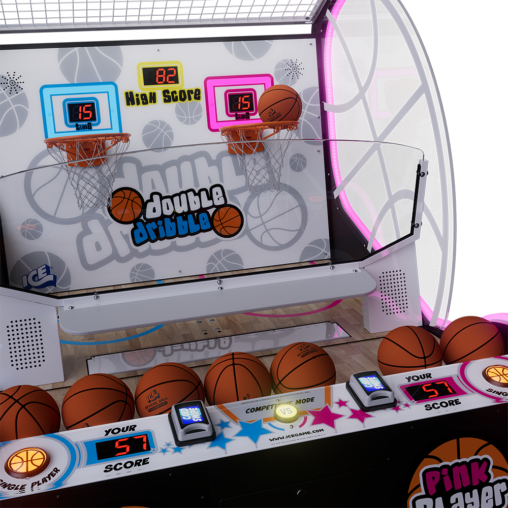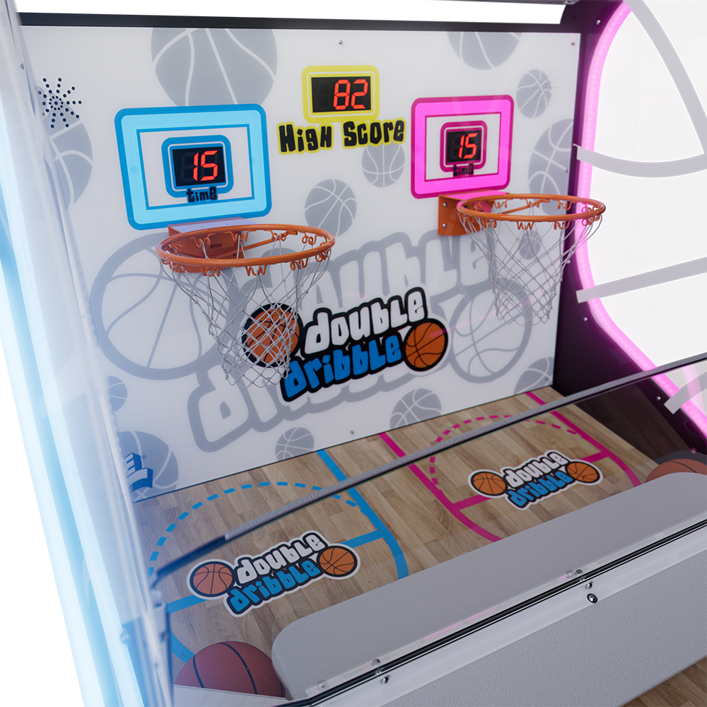 Double dribble can be played in single player or 2 player mode (where the 2 players are playing their own individual games) or competitive mode (where both players coin in and compete against each other). As players step up and shoot into the net, watch your earning double with this fun sports game for all ages.