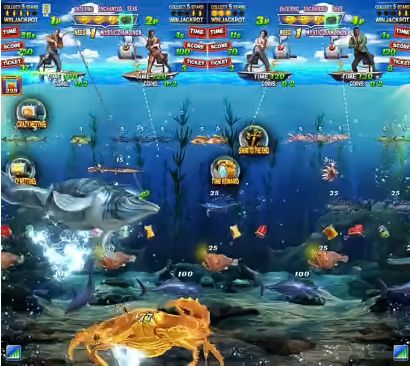 Players are tasked with catching the most fish before the time runs out. Good hand-eye coordination is required to angle the hook to catch the biggest fish; the bigger the fish, the more points the player will get. Once a fish has been caught, the player must reel in as fast as possible to confirm the catch and add it to their score. Tickets are decided depending on the amount of points each player has when the time runs out. Multiple power-ups help you along with your fishing adventure, such as quick hook, multi hook (2 hooks), net area capture, reel, freeze the screen and in the enchanted sea rapid fire. Gameplay is quick and easy to understand, making it suitable for players of all ages.