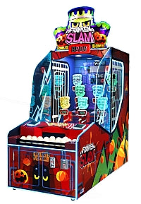 Franken Slam is a thrilling ball-toss redemption game where players race against time to knock down glowing Frankenstein heads. Each color target—green, blue, and orange—awards different points. Hit the bonus score to win extra tickets! Fast-paced, fun and skill-based, it’s a monster hit for any arcade or FEC.