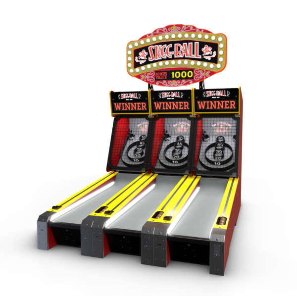 The updated Skee-Ball lanes retain the classic look & feel of the original patented alley. Complete with elaborate flourishes and detailed craftsmanship that was typical in those days, Skee-Ball Classic is perfect in vintage or retro-styled locations; whether bar arcades, game rooms, lobbies or homes. To satisfy the authentic Skee-Ball purists, it keeps the front and side metal cages, the classic sounds, and the simple point scoring metrics.