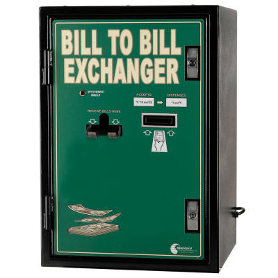 Standard’s BX – Bill Exchanger – Series machines are designed to be an “Automated Attendant”, providing bill change for higher denominations. Excellent locations for Bill Exchanger machines are attended or unattended coin laundries, card laundries, car washes, museums, zoos and aquariums, paid parking lots; anywhere that would allow more customer convenience by breaking higher denomination bills into smaller denomination bills that are used in daily transactions. Why make your customers use $20 bills when smaller denomination bills would better serve the purpose.