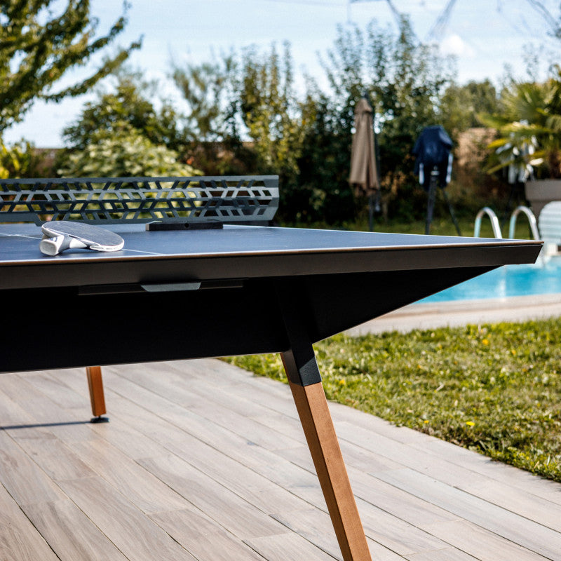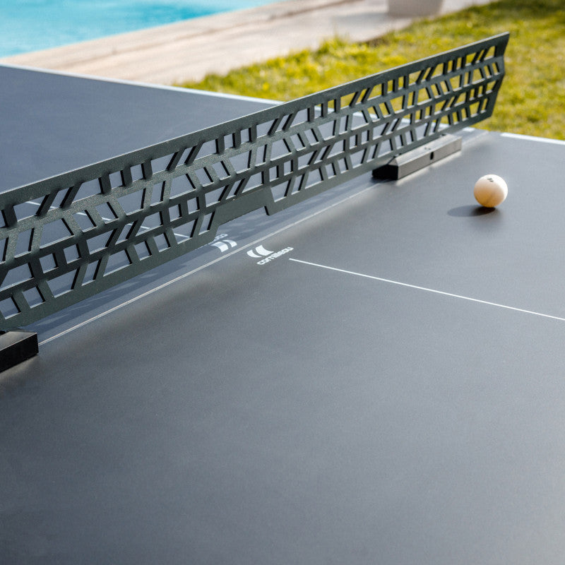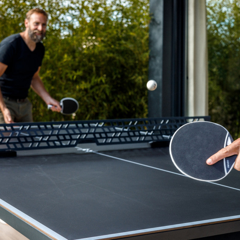 The Origin outdoor table tennis table stands out for its unique style. Its lines, materials and finish make it a real design object. Made in France, the Origin table benefits from particularly meticulous design. It converts in the blink of an eye into a dining table simply by removing the net. Its durability and unfailing strength provide total peace of mind for both gatherings and games. Equipped with classic black ping pong playing surface with white lines or decorative stone playing surface, the quality of play is identical to that of a Cornilleau outdoor table.