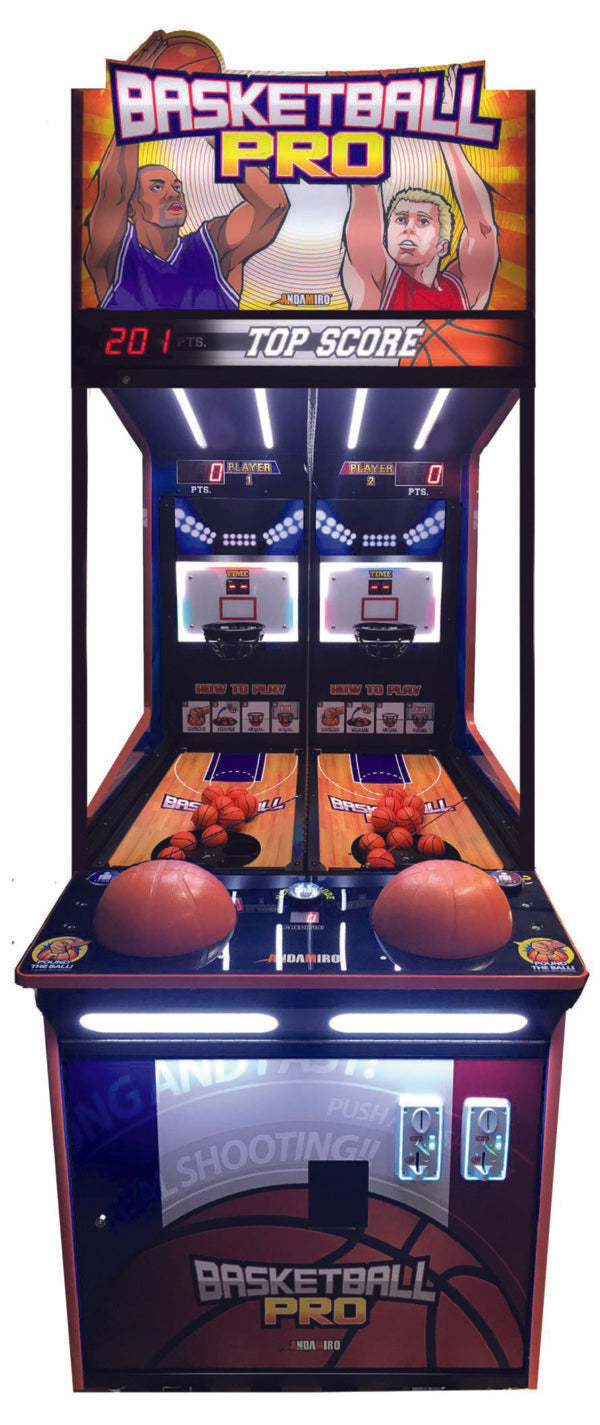 Basketball Pro delivers the excitement of arcade basketball with an innovative air-powered hemisphere controller that's the actual size of an official basketball. With its compact footprint and proven earning power, this game thrives in both family entertainment centers and street locations. Choose between the ticket redemption model for FECs or the Fun Version optimized for bars and street stops with coin and bill acceptance.
