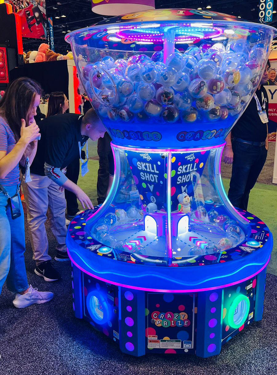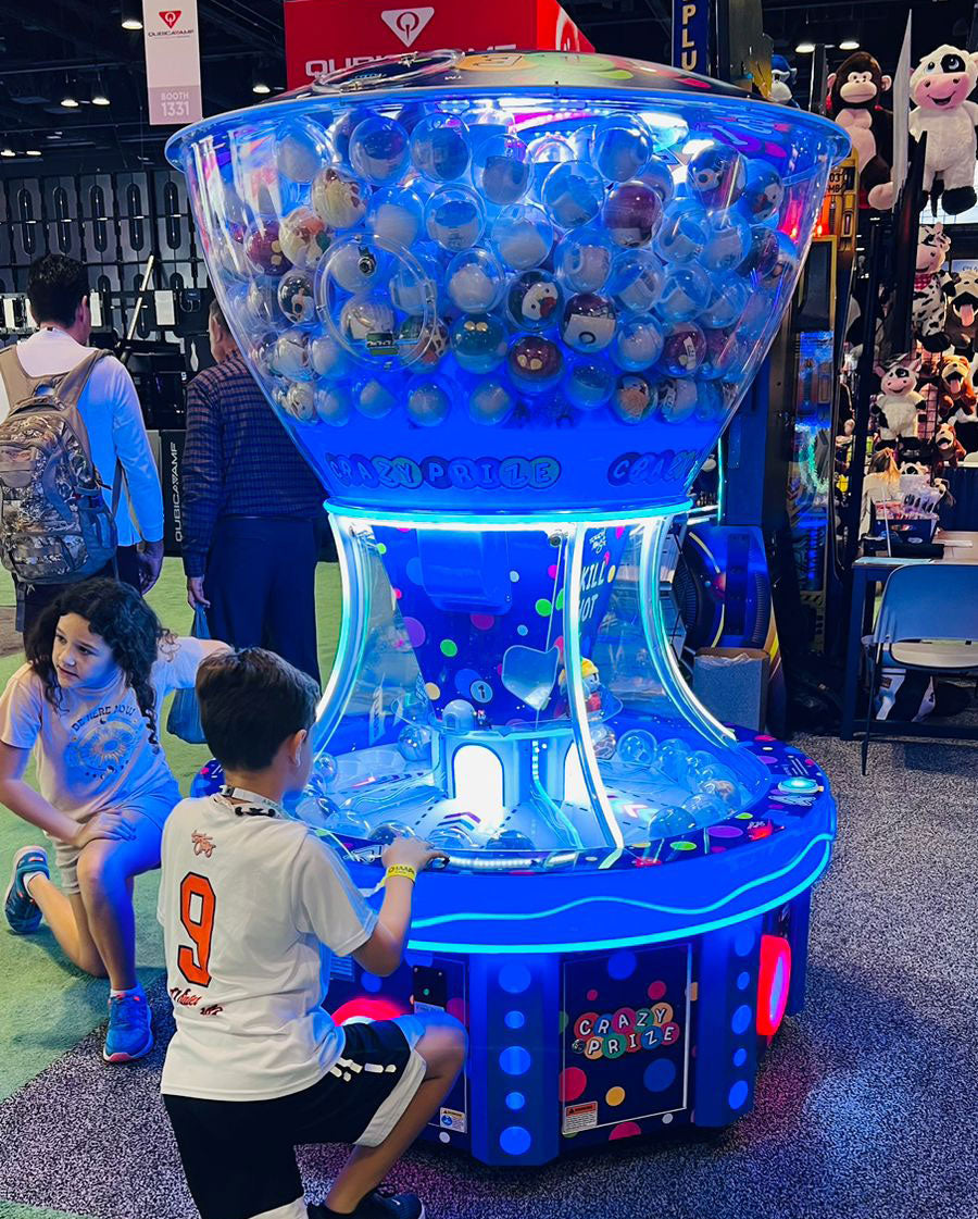 Skillfully press the button at the right moment to shoot the capsule off the moving carousel and into the winning hole. With its attractive cabinet featuring a spacious prize showcase area that can hold up to 400 capsules, Crazy Prize offers an enticing visual appeal to players and onlookers alike. What sets this game apart is its automatic capsule replenishment system, ensuring a continuous flow of excitement as prizes are won, keeping players engaged and eager for their chance to claim fantastic rewards. Crazy Prize is a must-have addition to any arcade or entertainment venue, offering an irresistible blend of skill, strategy, and anticipation in every play.