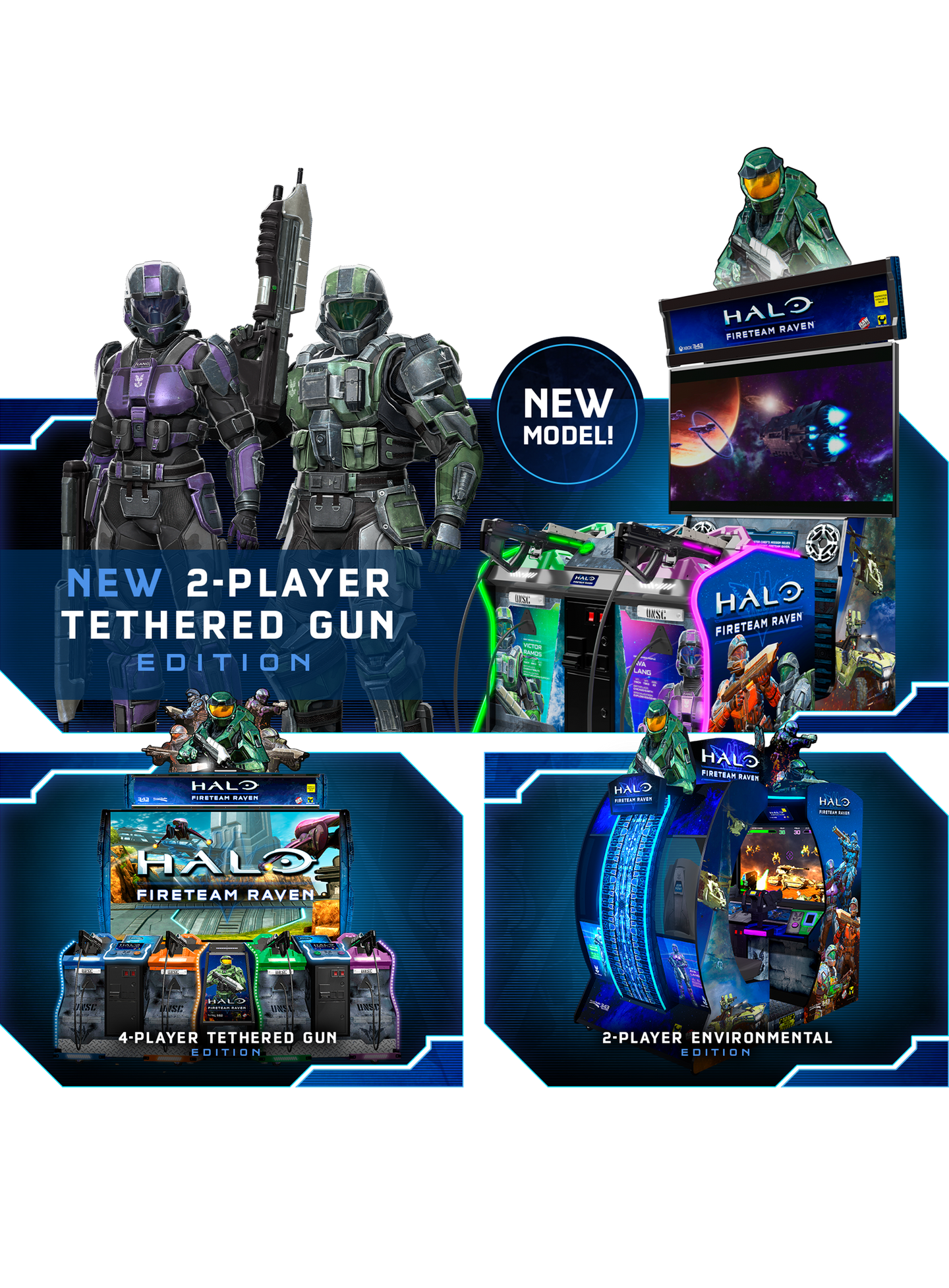 Raw Thrills and Play Mechanix, in collaboration with Microsoft, are bringing the arcade phenomenon Halo: Explore the legendary Halo universe during the original events of Halo: Combat Evolved from the never-before-seen perspective of the ODST soldiers of Fireteam Raven. Battle alongside the iconic Master Chief with a full arsenal of powerful Halo weapons to defeat fearsome enemies like the Covenant and Flood across six intense, action-packed levels.