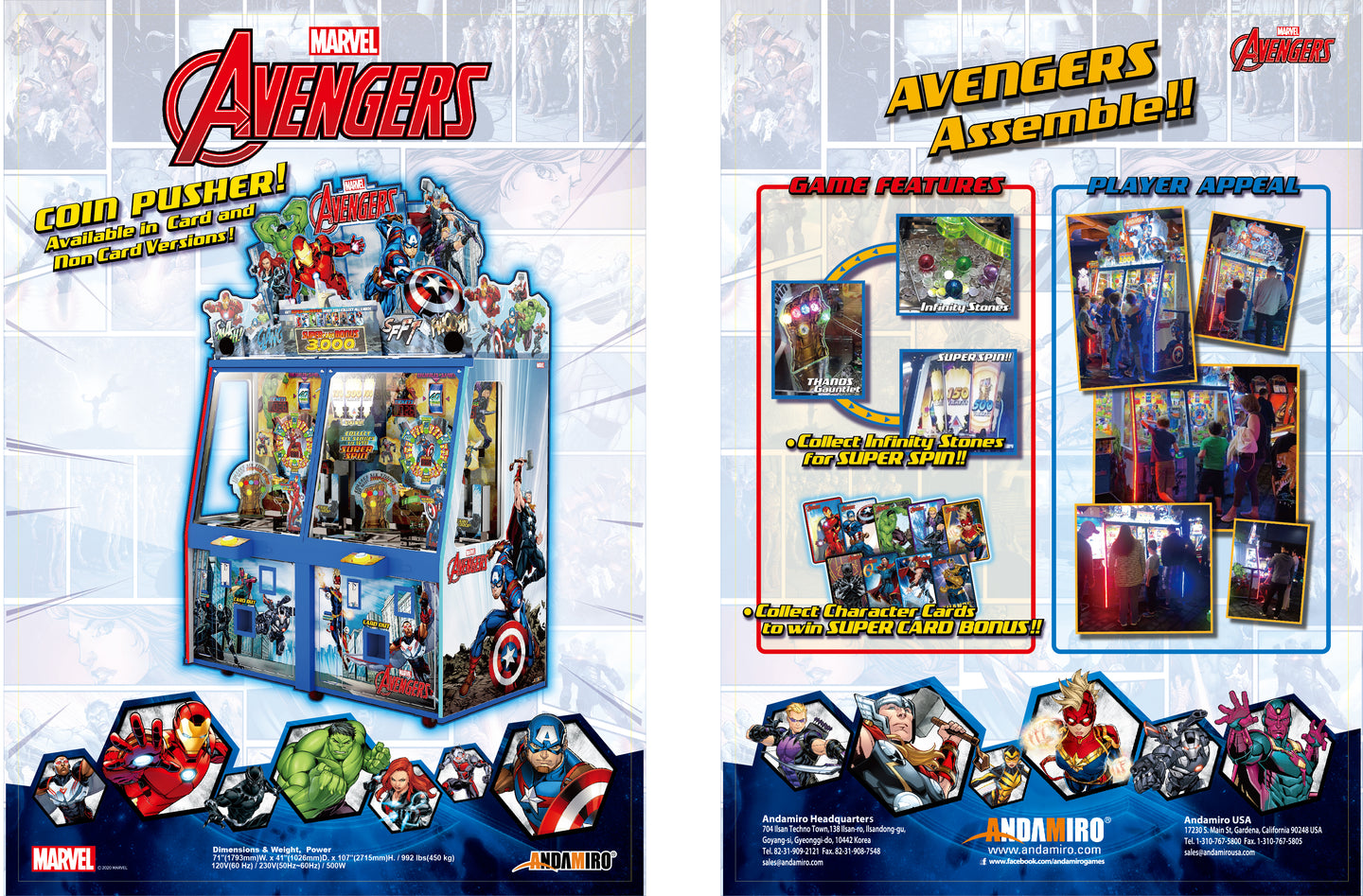Andamiro’s Marvel Avengers coin pusher is now available in a one-player model in two versions: