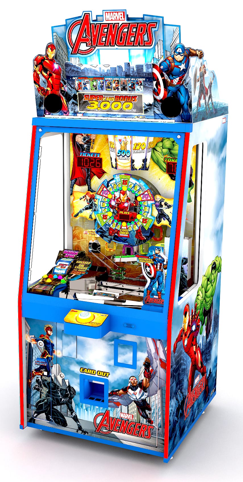 Both card and non-card versions are ticket-redemption games. Avengers is a feature-rich,