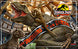 Distinctive hand-drawn art by Jonathan Bergeron highlights iconic dinosaurs from the film series, creating instant visual appeal that attracts players across all demographics.